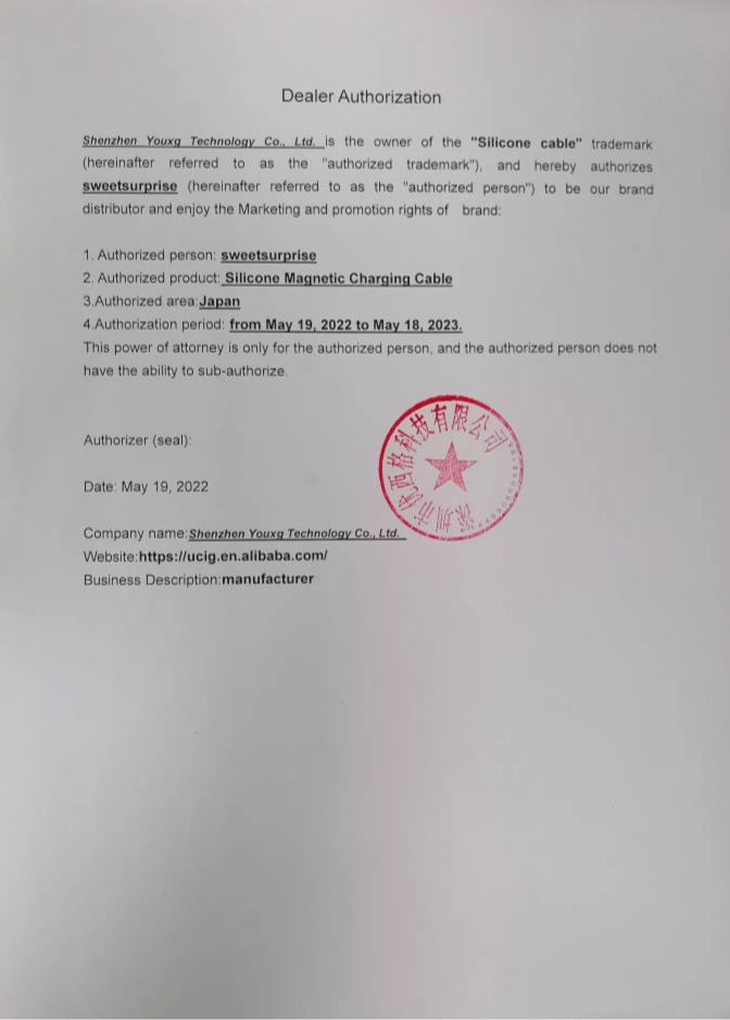 Shenzhen Youxg Technology Co., Ltd.より正式に販売許可を取得しております。