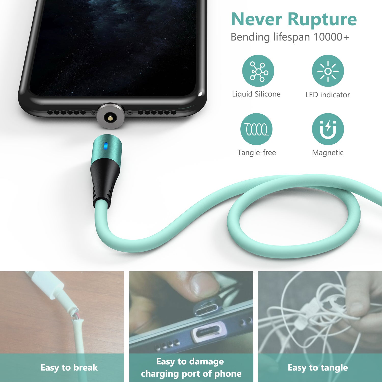 10000回以上のダメージテストにクリアし、断線しにくいタフな耐久性がありながらソフトでシルキー、環境にも優しい素材優れ物。