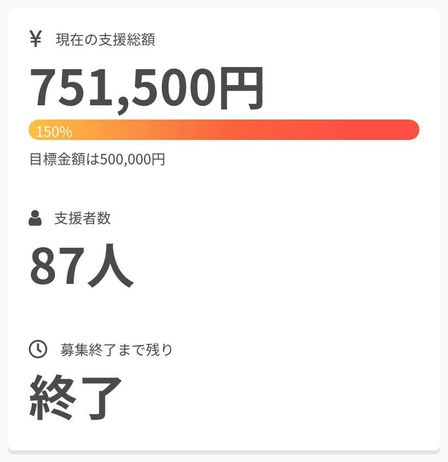 目標は達成となりましたがクラウドファンディングの期間は7月29日(金)まであります。