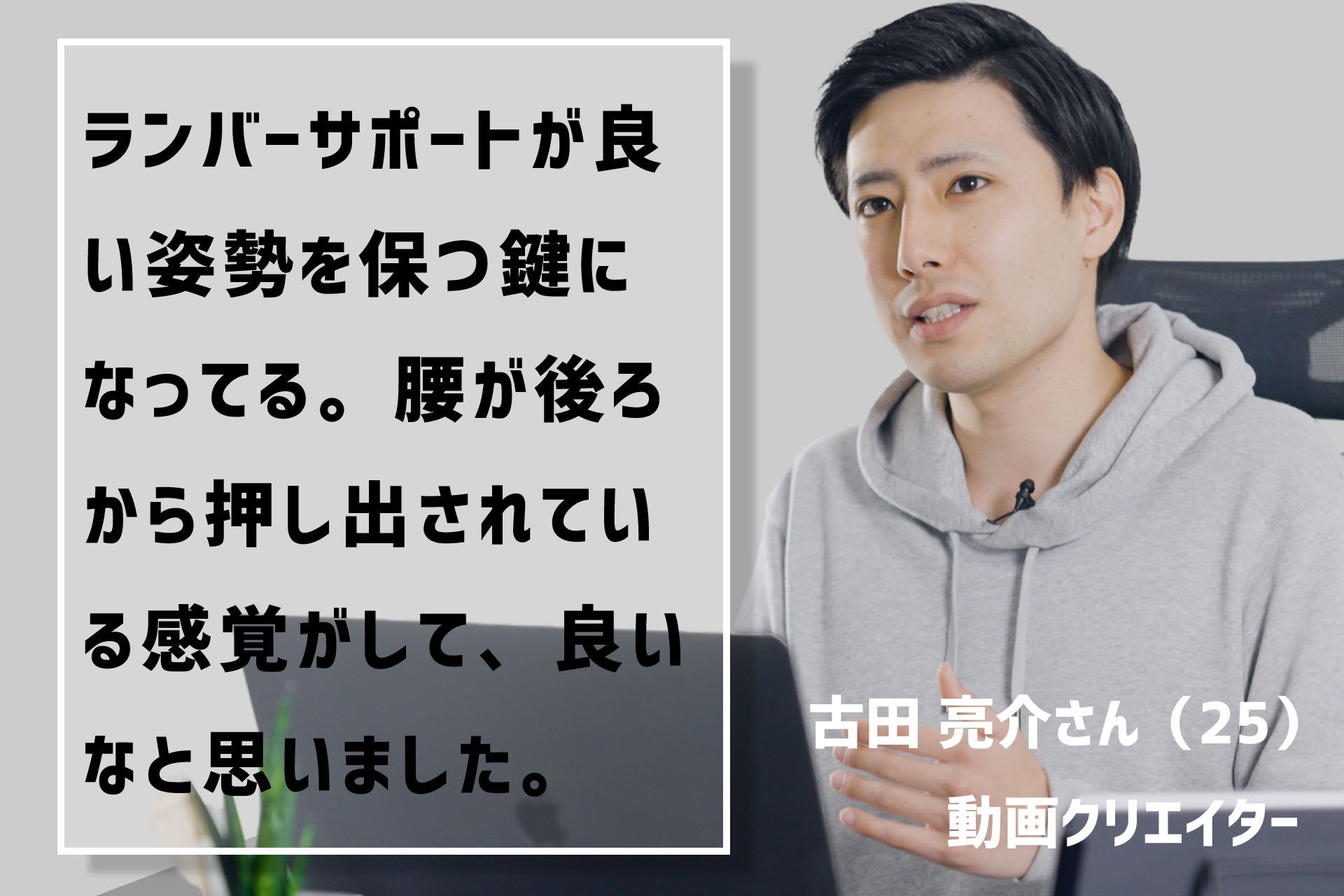 日々の姿勢がこれほどまでに影響を与えると知った私は、適度な運動をしながら、毎日10時間以上座って活動する環境を少しでも快適に過ごせるように、ワークチェアの製品企画を始めました。