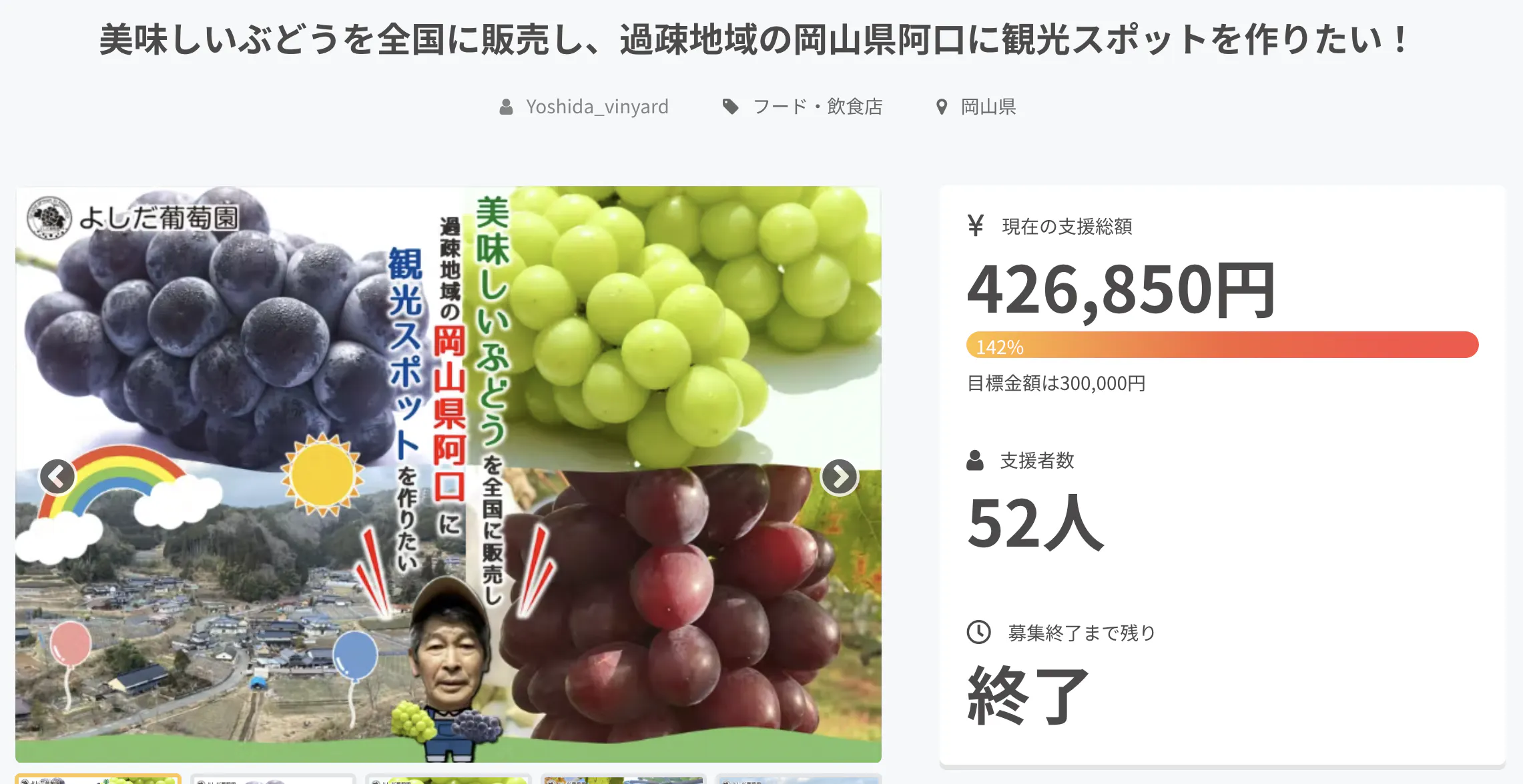 52名の方から426,850円のご支援を頂戴し、