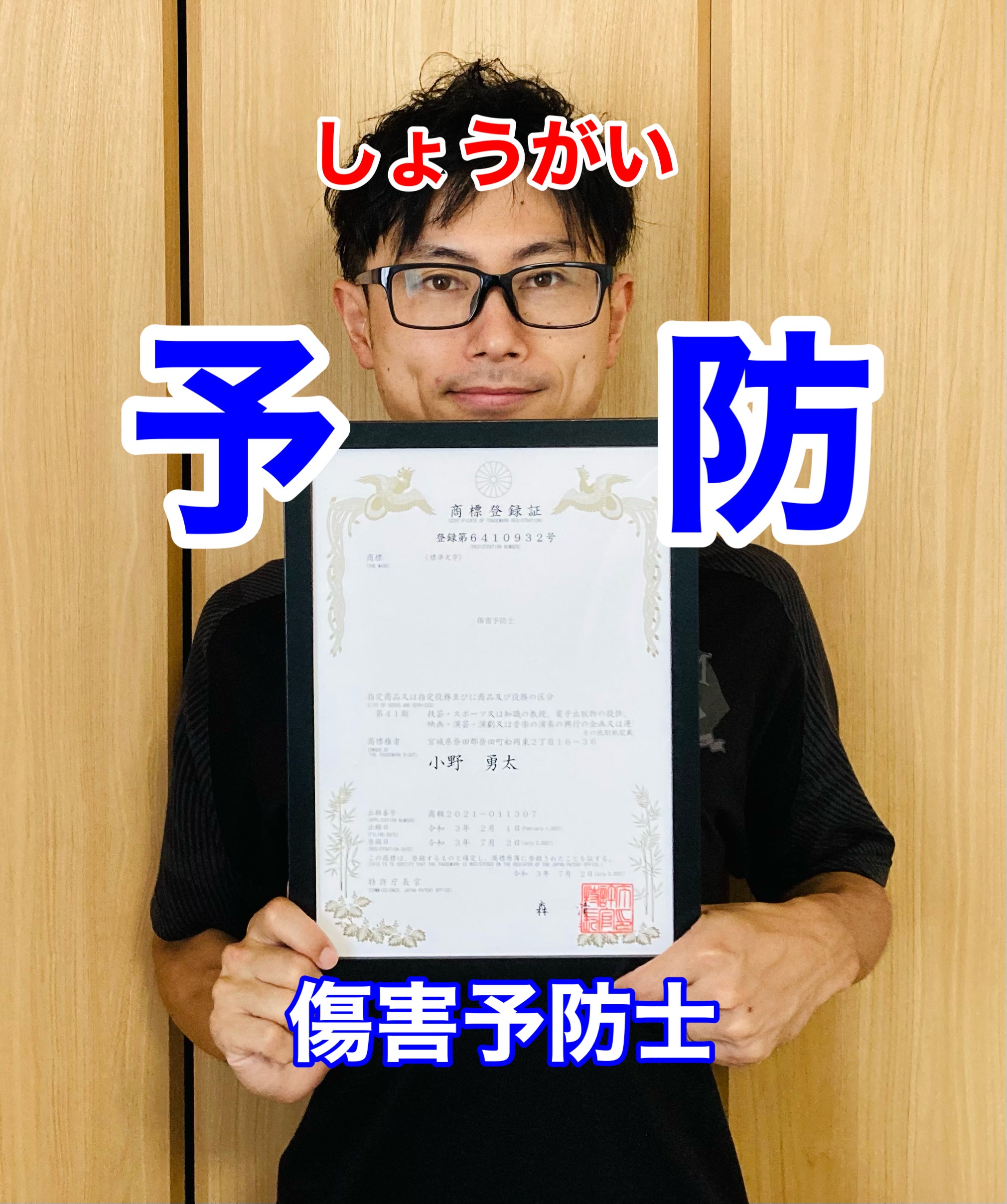 『傷害予防士』という言葉の商標登録(登録第6410932号)