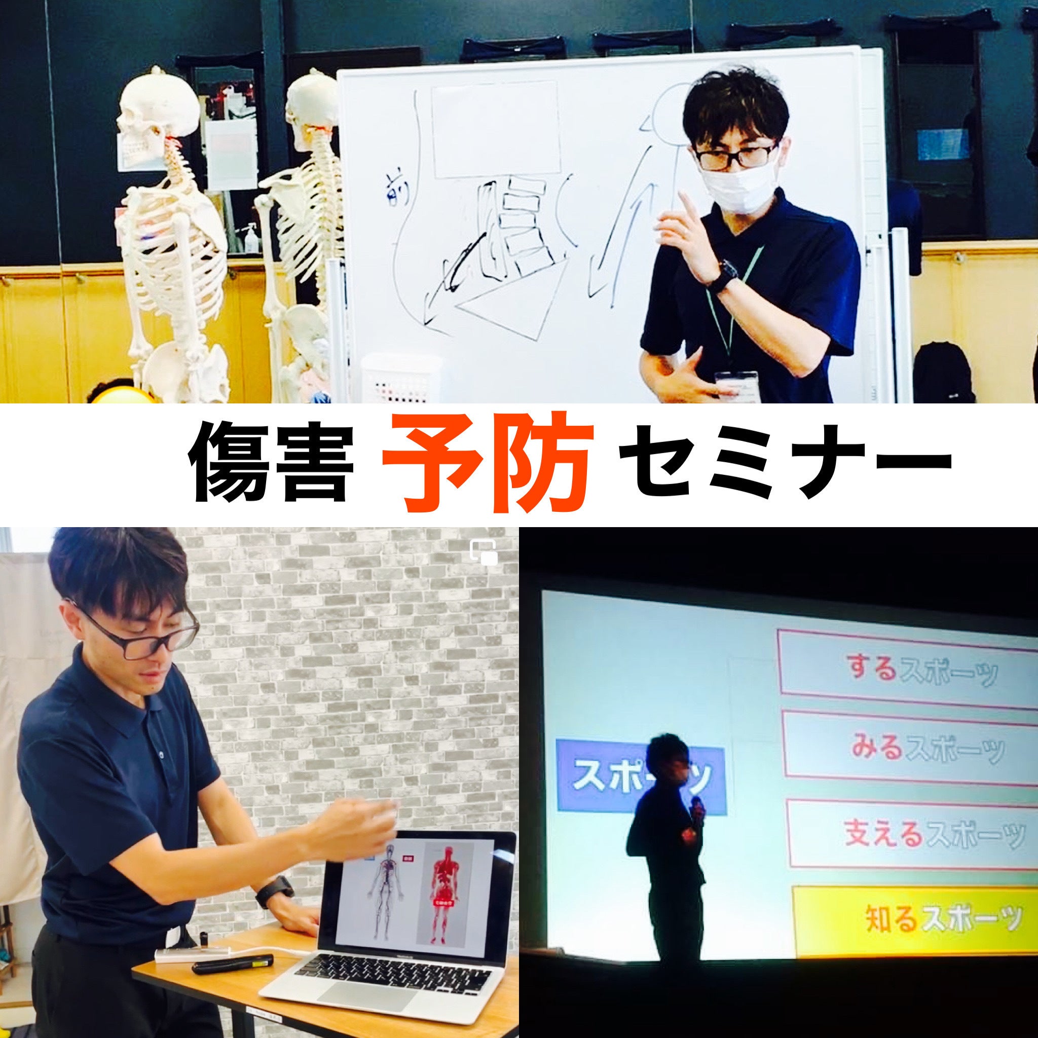 前職(大学職員)の頃に行った多数のセミナー経験を活かし、自店舗の利用者さんや、地域のフィットネスジム会員さん、地元柴田町の町民に向けたものなど、傷害予防普及に向けたセミナー活動をしています。