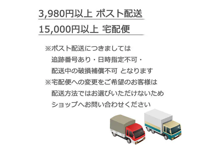 ↑配送方法につきましては、リターンページへも掲載しております。
