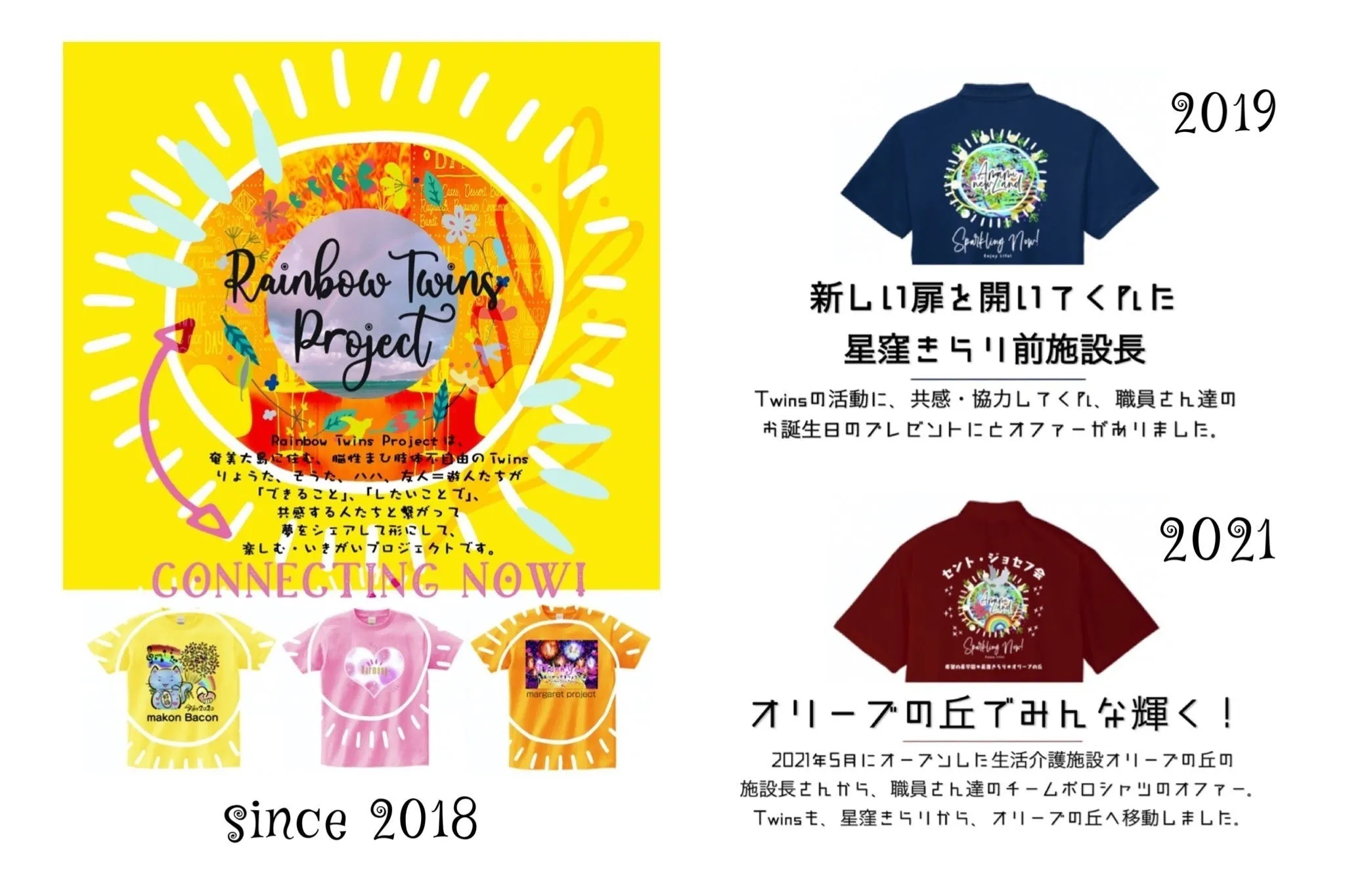 2018年、浜畑Twinsは、高校生の時からやってみたいと思っていた夢をシェアして「Tシャツをつくって、共感する人達と繋がりたい!~Rainbow Twins Project~」を開始。