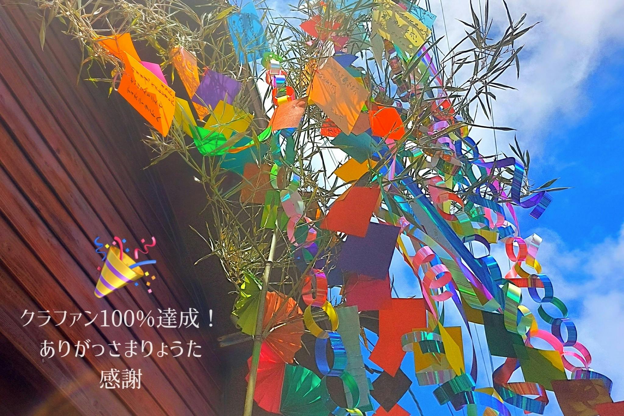 今年の奄美の七夕(8月7日)の短冊には、『クラファン「介護現場に、イキガイと、愛と笑いとユーモアを!」100%達成!ありがとうございました!(過去形で書くと良いと聞いたので)』と願いを書いててっぺんに結びました。
