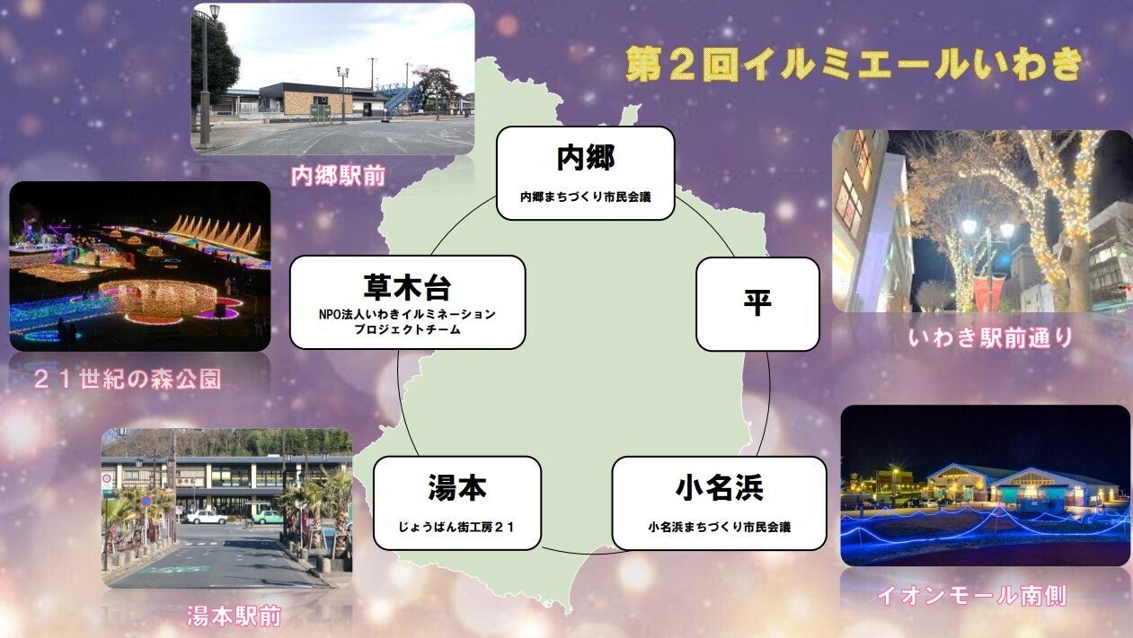 今年はいわき青年会議所が各地の想いをイルミネーションで繋ぎ、現在イルミネーションを行ってない地域にも広げることで、
