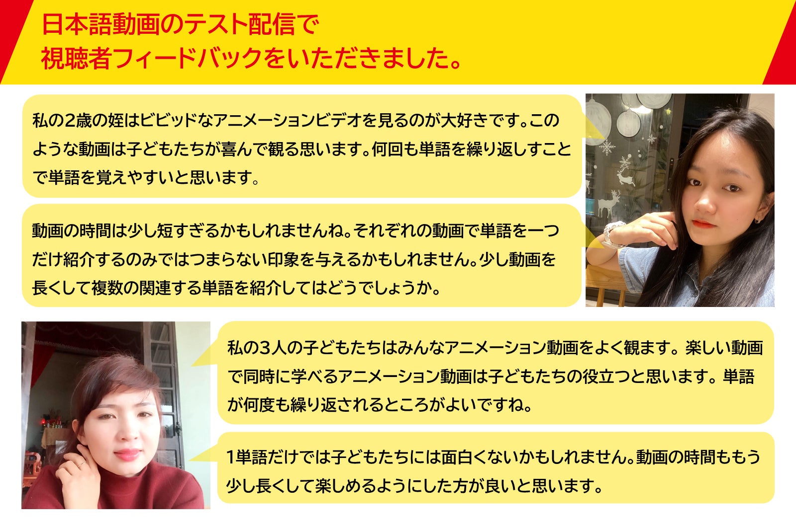 日本語の学び動画でテスト配信を行い、フィードバックを頂きました。