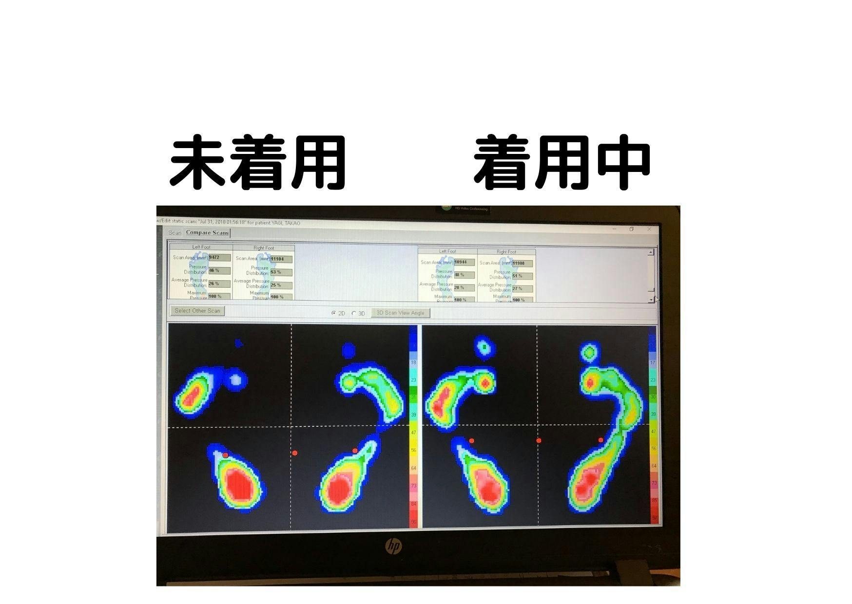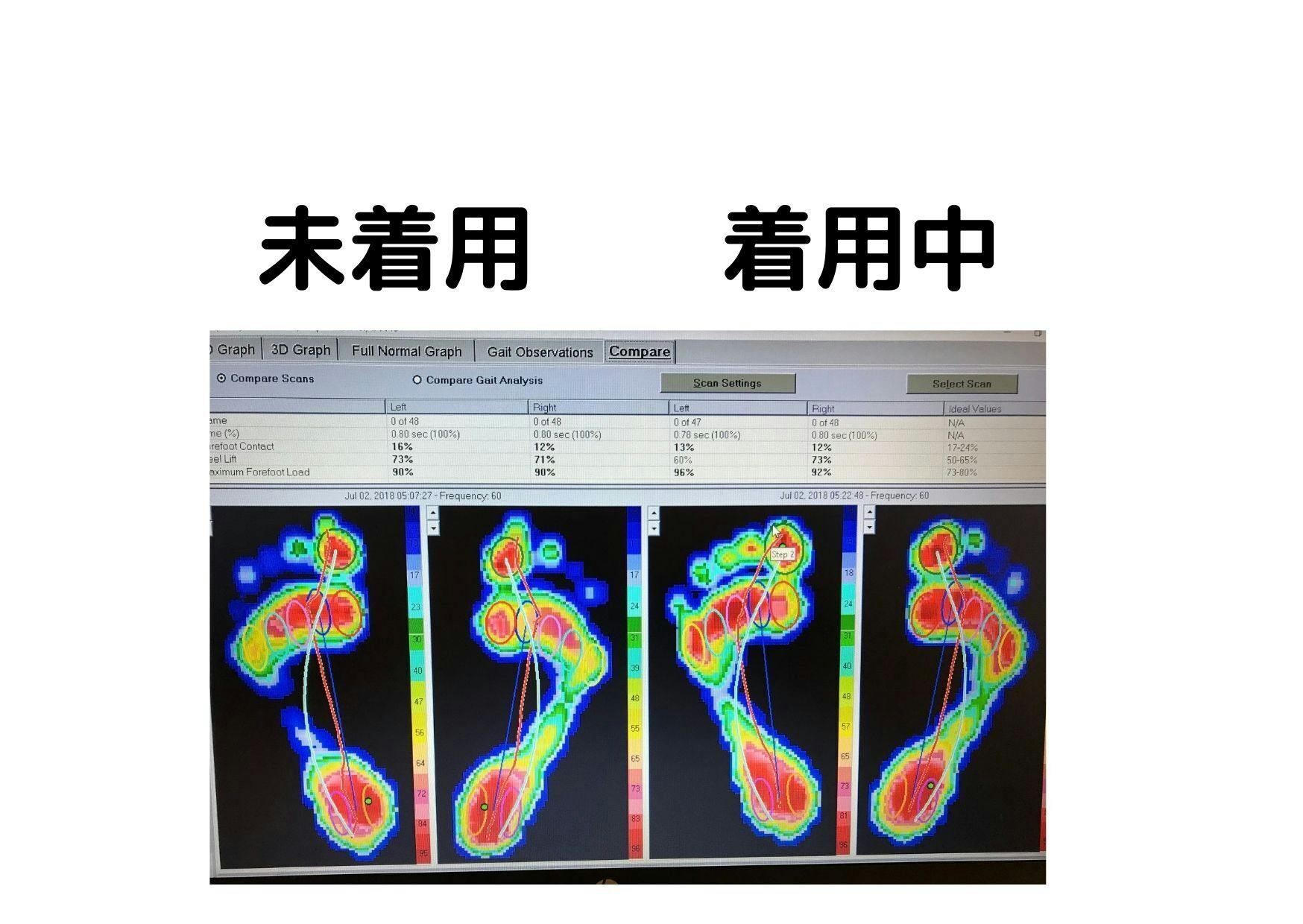 足首まもるくんを着用すると、左右足の荷重が均等化しています。