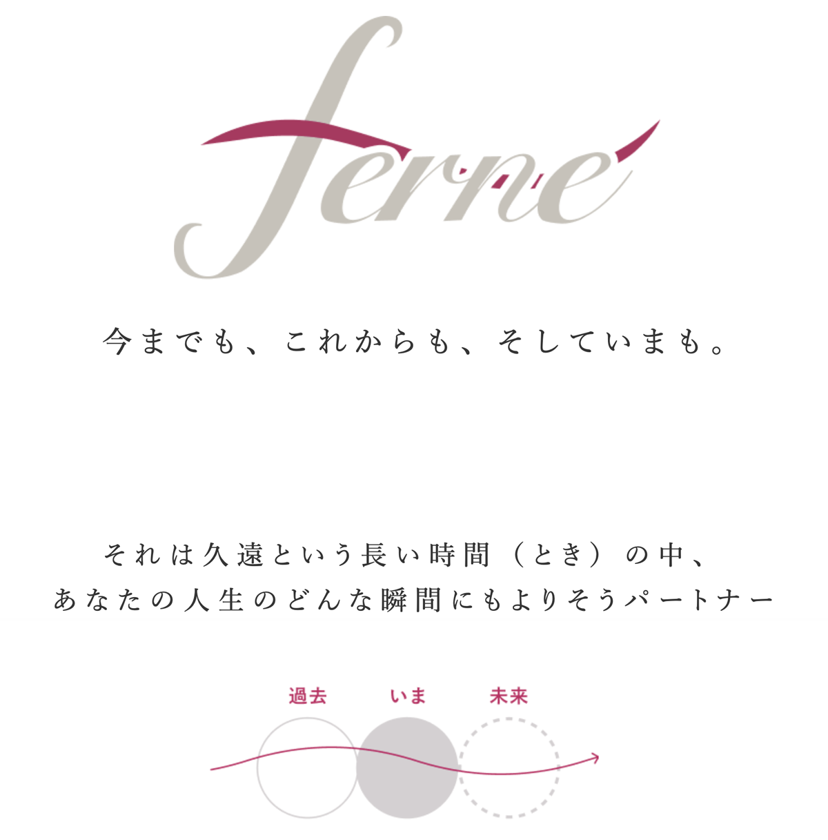 「かわいい」から「キレイ」へ。「キレイ」から「美しい」へと変化していく女性のライフステージ。そのどんな瞬間にもあなたに寄り添うパートナー。そんな思いで立ち上げたブランドが「Ferne -フェルネ-」です。