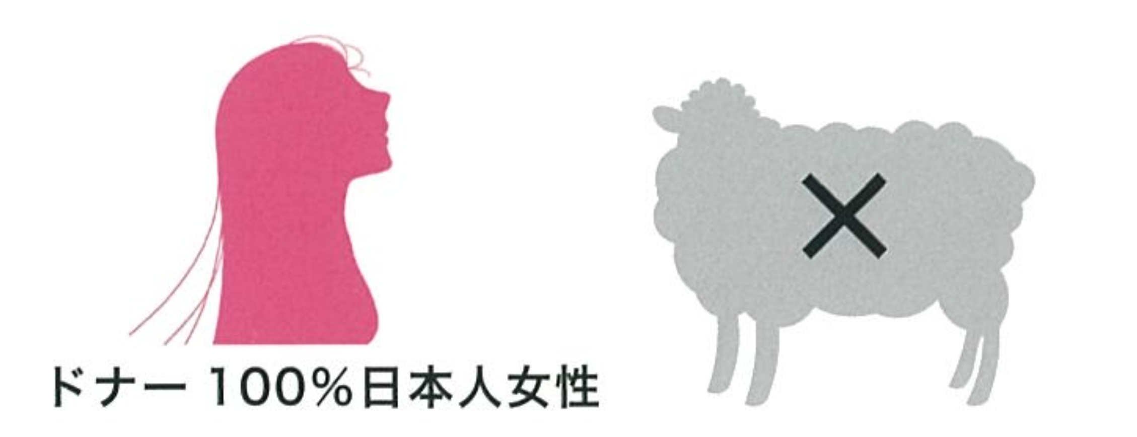 製造工程において動物由来の成分はまったく使用しておりません。ドナーは日本人女性であり、100%ヒト由来成分です。また、ドナー検査と製品出荷前のウイルス検査のダブルチェックを行っています。