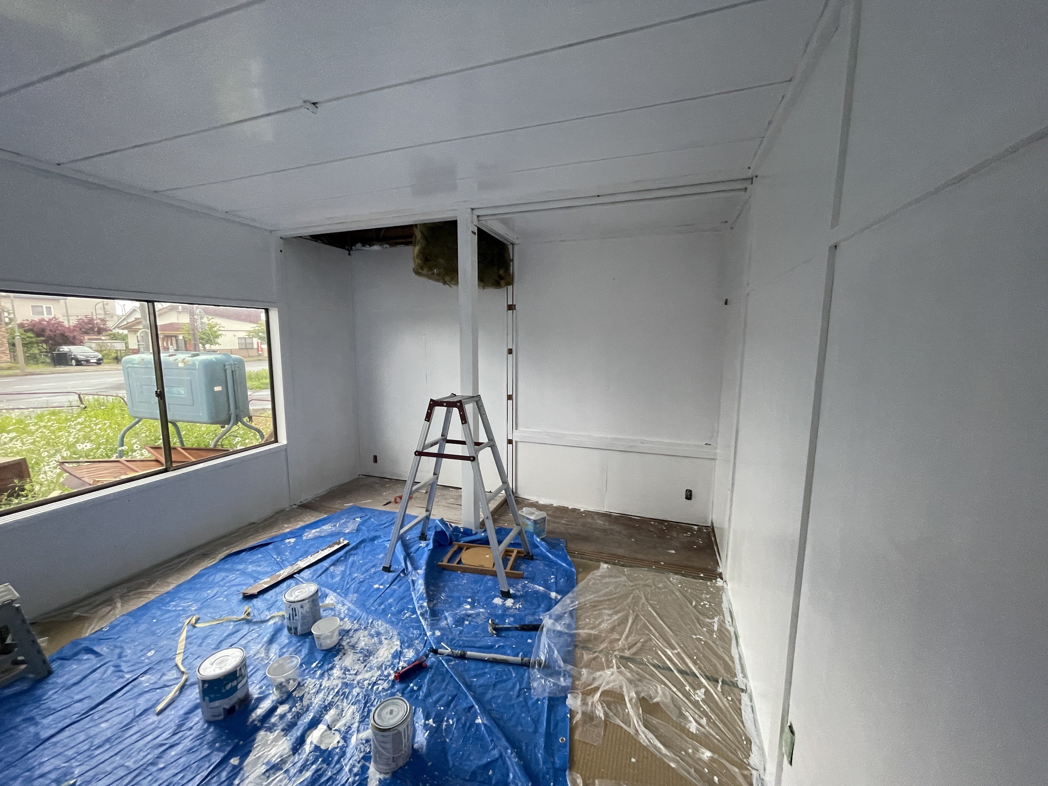 DIYもぼちぼち開始していまして、東京などからもお手伝いに数泊来てもらっています。みんなでペンキで壁を塗ったり、部屋の解体などをしています。