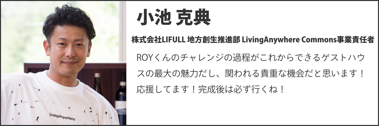 今回のプロジェクトの目的は、みなさまに資金を援助していただくだけではありません。僕が作る「人と日常にとけるCo-Living」をテーマにしたゲストハウス、”VACILANDO(ヴァシランド)”を一緒に作る当事者になっていただきたいです。ぜひ応援よろしくお願いいたします!
