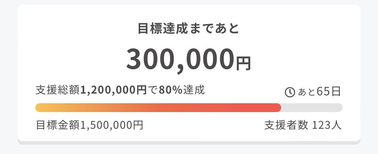トータルの資金としては1,000万円ほどかかっているので、ファーストゴールは達成しましたが、少しでも多くの方にご支援いただけますと力になります><