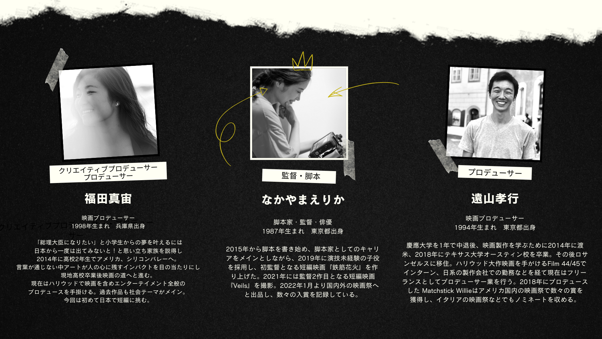 短編映画「探す未来」プロデューサーの福田真宙です。この映画はハリウッドx日本の多様なチームで、東京の下町である月島を舞台にお送りする物語。
