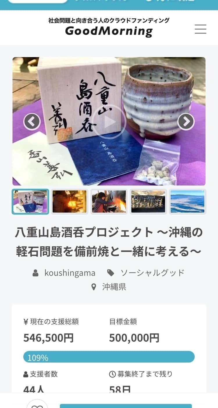 《告知》クラウドファンディング「八重山 島酒呑プロジェクト」次なるネクストゴールに向けて始動します。皆さまのご支援のおかげで現在112%563000円のご支援をいただいております。ありがとうございます。そんな「八重山島酒呑プロジェクト」今後はぐい呑みだけでなく、様々な作品に応用したく、この度ネクストゴールを設定させていただきます。ネクストゴールの目標金額は150万円です!!!目標額150万達成時には、5000円以上の支援者の方々に、ネクストゴール記念で「八重山ぐい呑」を、お一人様1個プレゼント致します。現在サンプルを製作中ですのでお楽しみに♪いきなり300%達成という目標は無茶かも知れませんが、自分に出来ることはできるだけして行きたいと思います。皆さまのご支援ご賛同よろしくお願いします。