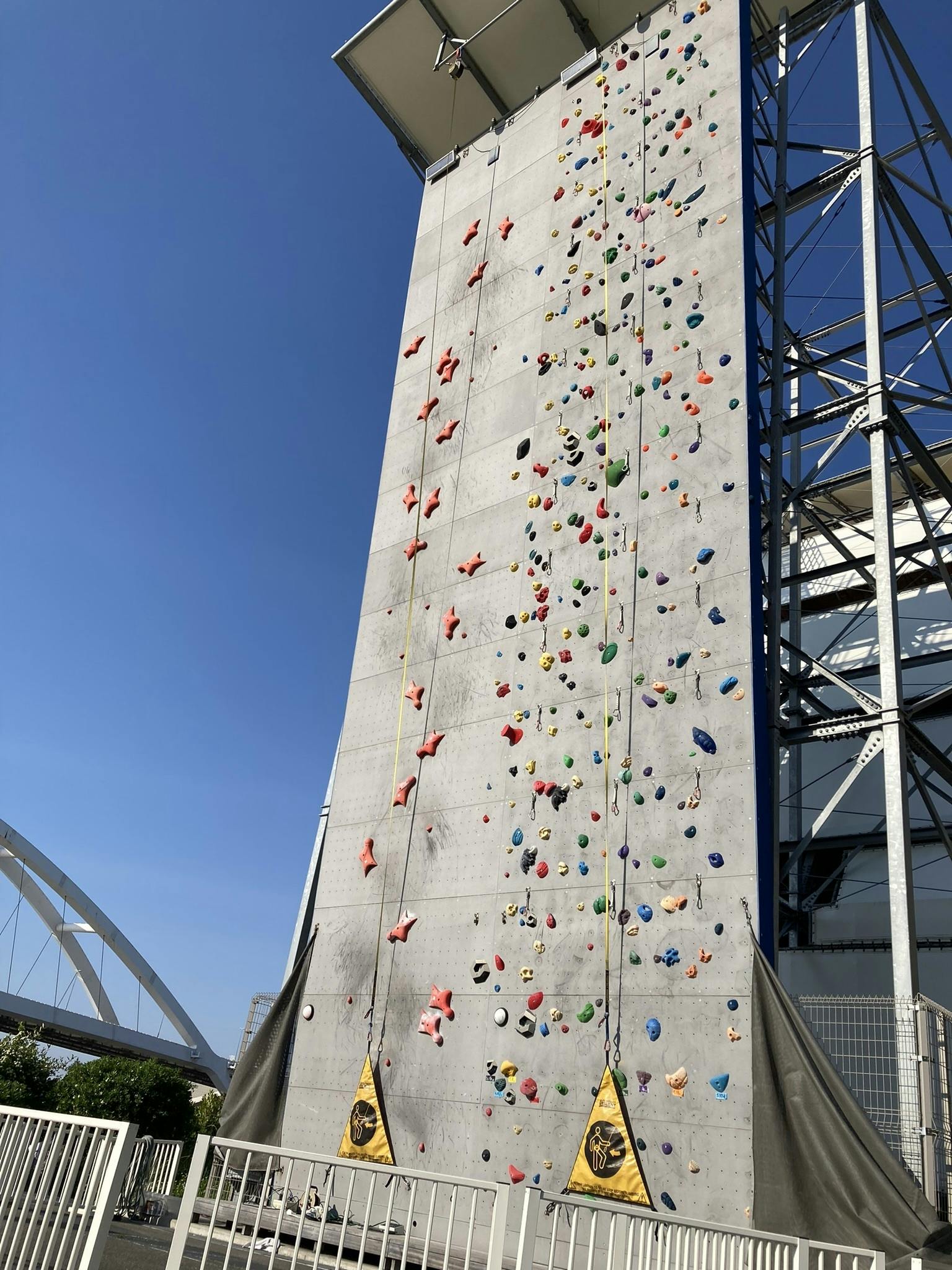 ※スポーツクライミングはリード、ボルダリング 、スピードと3種目あり、スピードクライミングは15mの壁をエレベーターよりも速く駆け上がり、タイムを競う競技です。