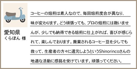 そのような背景から、今年いっぱいがコーヒー豆の保管の期限だと思い、最後のプロジェクトとさせていただきます。