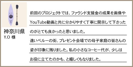 • こんにちは^^いつもご支援いただきありがとうございます!本日19時より、クラファン第3弾!!緊急開催いたします!!!リターン品もたくさんご用意しておりますのでぜひ遊びにきてください( ^∀^)一緒に、ペルー産コーヒー豆を廃棄処分から救って、ペルーの子供たちへ日本の文化を伝えませんか?応援してもらえたら嬉しいです♫こちらのリンクは、本日19時以降にオープンしますm(_ _)mよろしくお願いします。https://camp-fire.jp/projects/view/738260?utm_campaign=cp_po_share_c_msg_mypage_projects_show もっと見る
