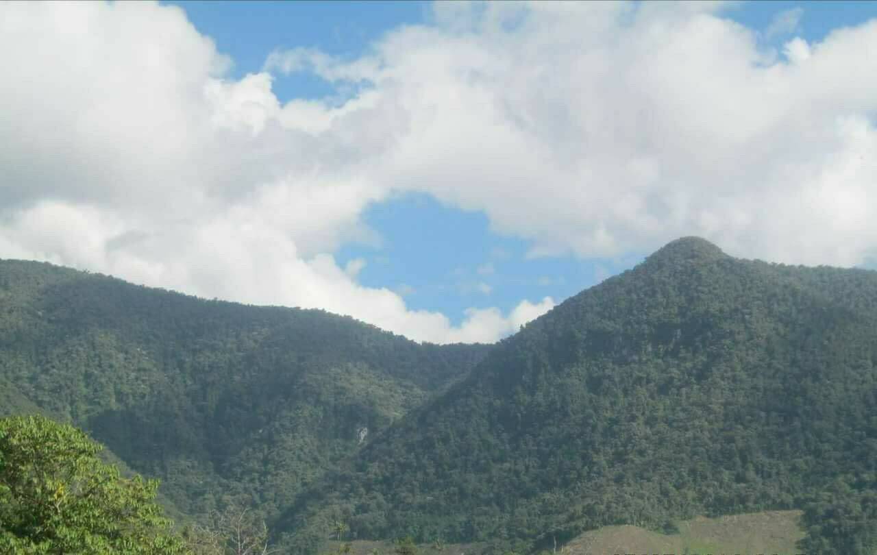 標高の高い、急な山の斜面にコーヒー農園があります。
