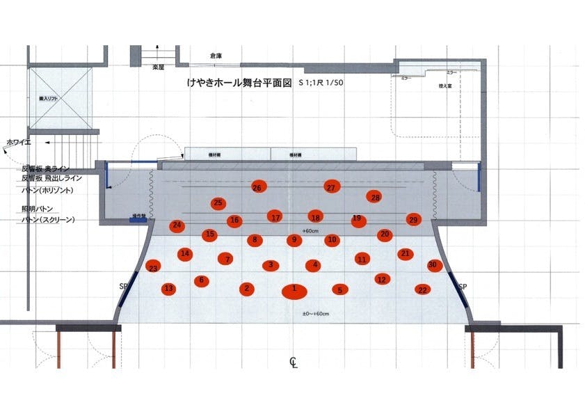 第二部はステージ上に30名、客席前方に10名で、40名で向かい合って丸くなる感じで合奏いたします。写真はステージ上に30名の配置イメージです。あとステージ下5名ほどで満席です。