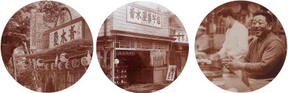 現在の東京がある場所は昔「武蔵の国」と呼ばれていました。大化の改新後にその国府は府中に置かれました。国府の政務機関である“国衙(こくが)”が大國魂神社の境内及びその東側一帯に存在しました。青木屋は、初代店主加藤幸吉が明治二十六年(1893年)にこの歴史ある大國魂神社の境内で、万頭の商いを始めたのが菓子屋としての出発です。以来120余年「森と水」が豊かな東京武蔵野の地で、愚直一徹に菓子づくりに精進し、地元の皆様に愛され育てていただき、今日まで続いて参りました。いつの時代も「菓子は喜び」という菓子づくりの精神を忘れずに、これからも“喜び創り”に邁進して参ります。