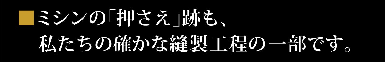 これは、ミシンの「押さえ」が通った跡で、縫製工程上やむを得ず付いてしまうもの。ご使用いただくうちに、自然と薄く目立たなくなってまいります。