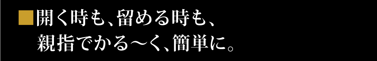 ※ くぼみに親指を軽く添えるだけで、簡単に開くのも便利なポイント。閉める時も、親指で軽くポンと留まります。