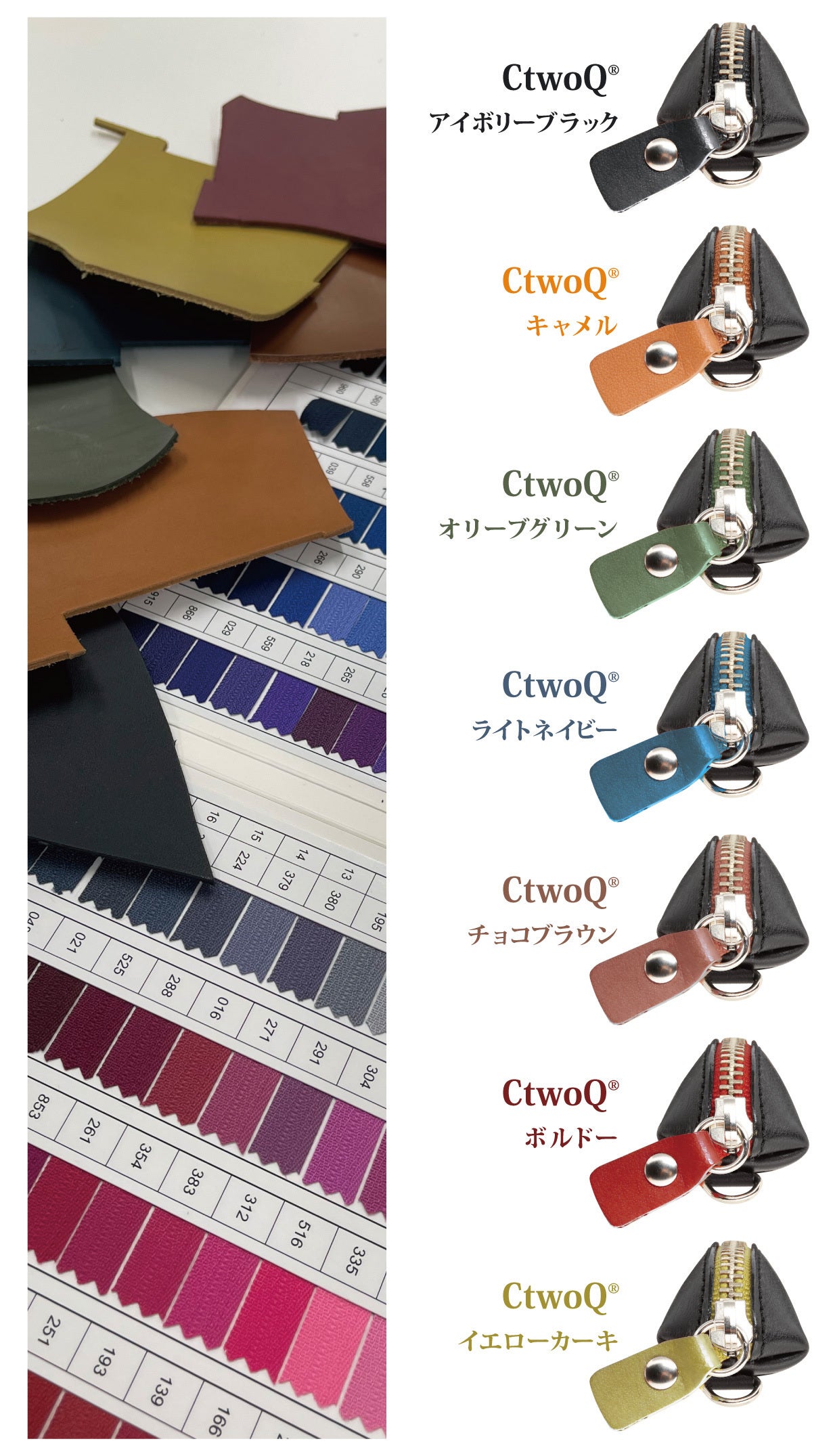 「ちっちゃART」は、ファスナー部分と引き手革部分のカラーを、SLIM ART“凛”の革色と同じ7色ご用意。