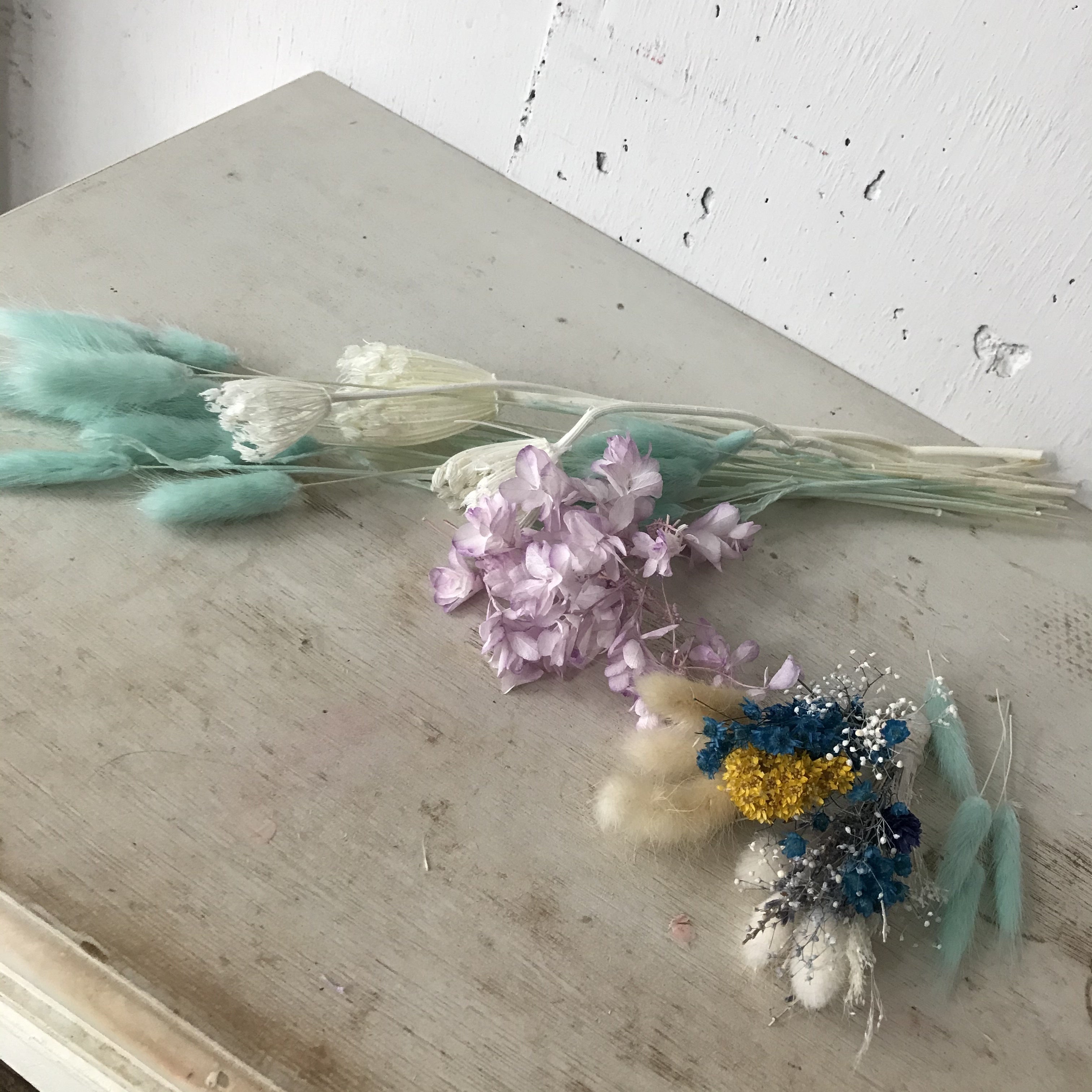 ドライフラワーは生花からドライフラワーにしていくのと、工房などでドライフラワーにしたものを仕入れるのと半々くらいです。