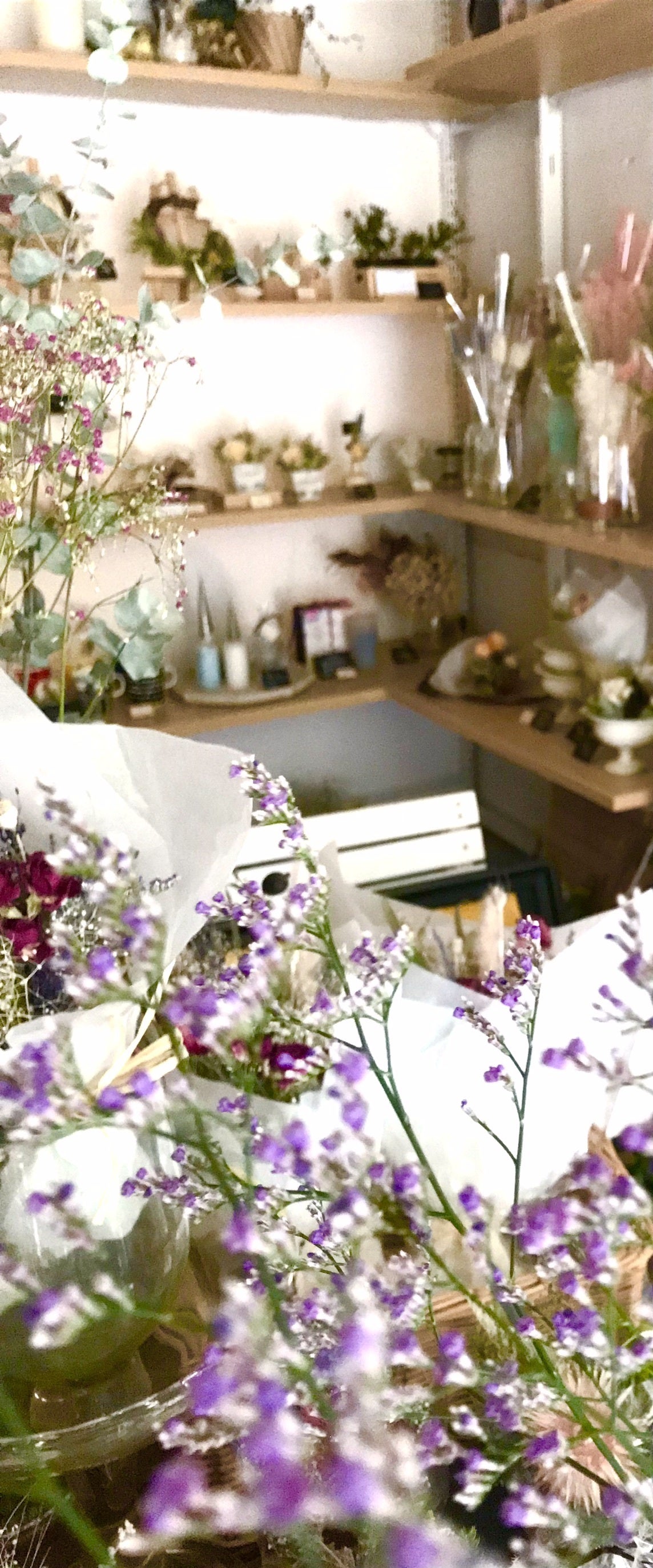 ドライフラワーは枯れているのではなく自然に乾いた一番身近な芸術品だと思います。食べ物などを買うように、ぜひ、ドライフラワーも生活に取り入れてもらいたく、皆様に少しでもそのきっかけを作れるような素敵なお店を作れるように努力したいです。