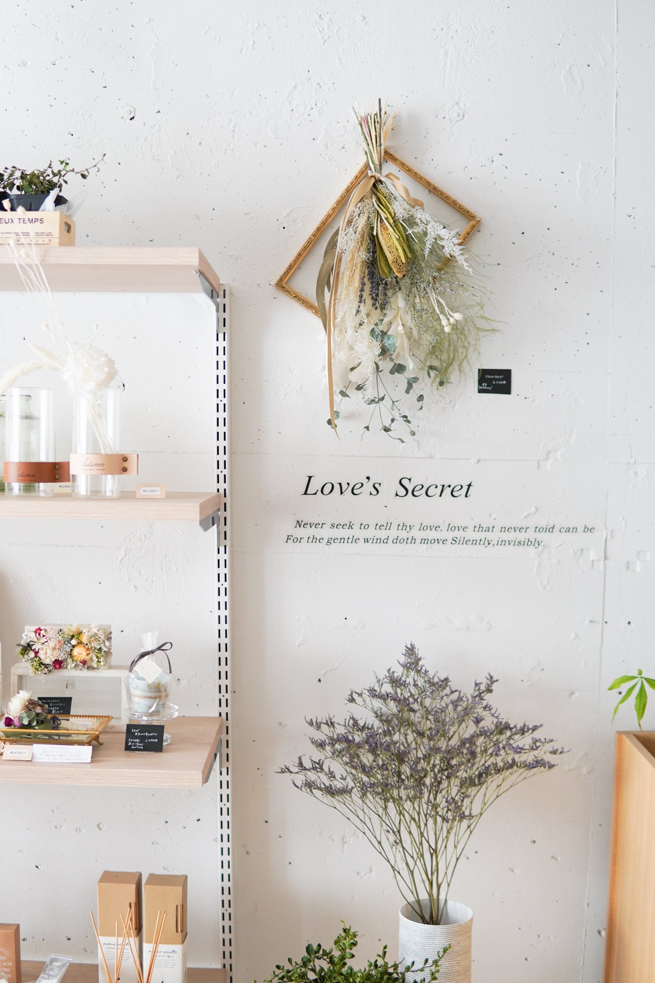 元々は雑貨屋さんのディスプレイでドライフラワーを使っていたことがきっかけで、このお花一つプラスするだけで、商品も引き立ち印象が変わる魅力に気づいて、もっと勉強して、ドライフラワーをインテリアの一つとして提案できればと思い、さらにディスプレイや雑貨、お花と色々なお店を10年近く経験してきました。
