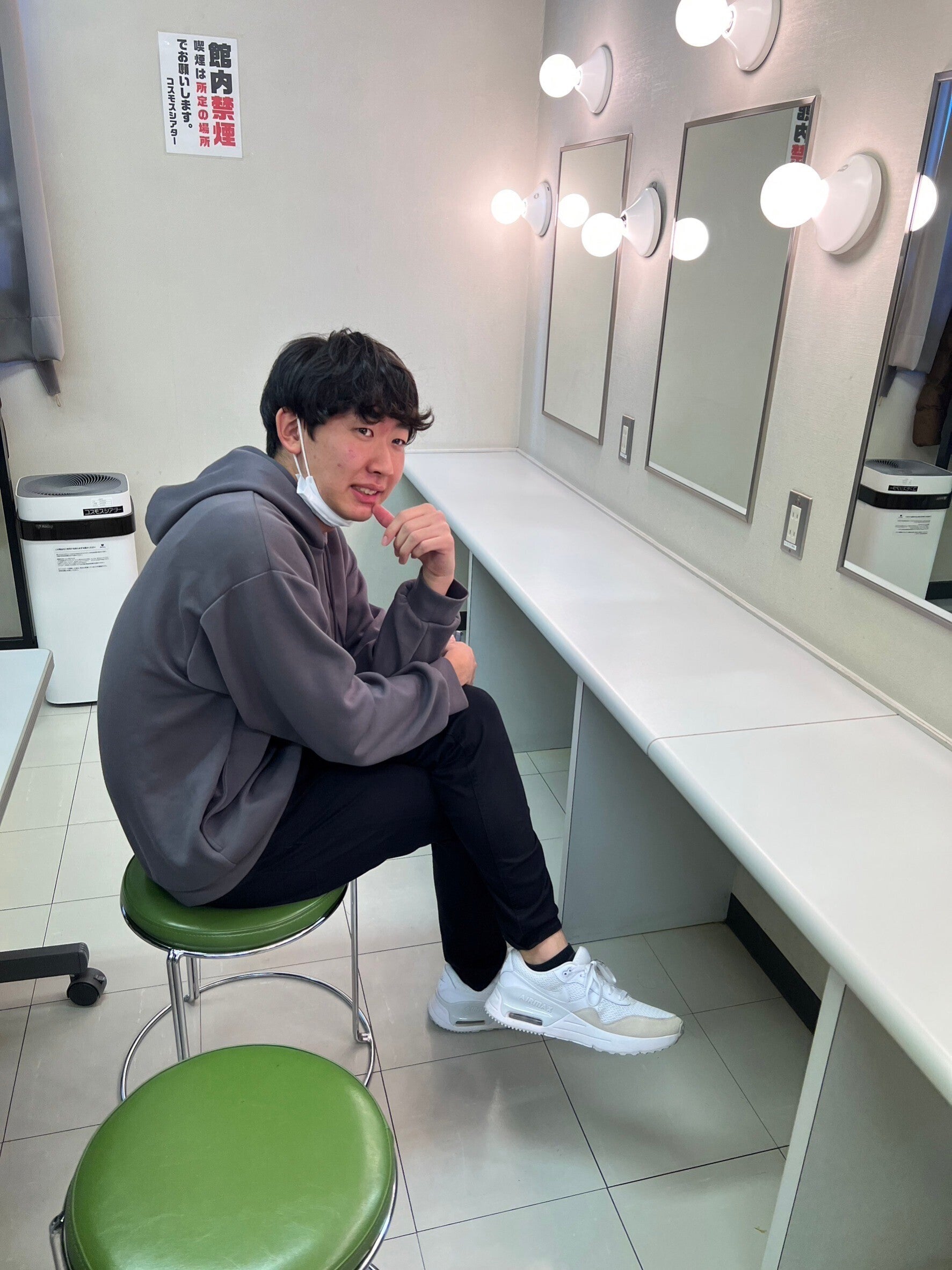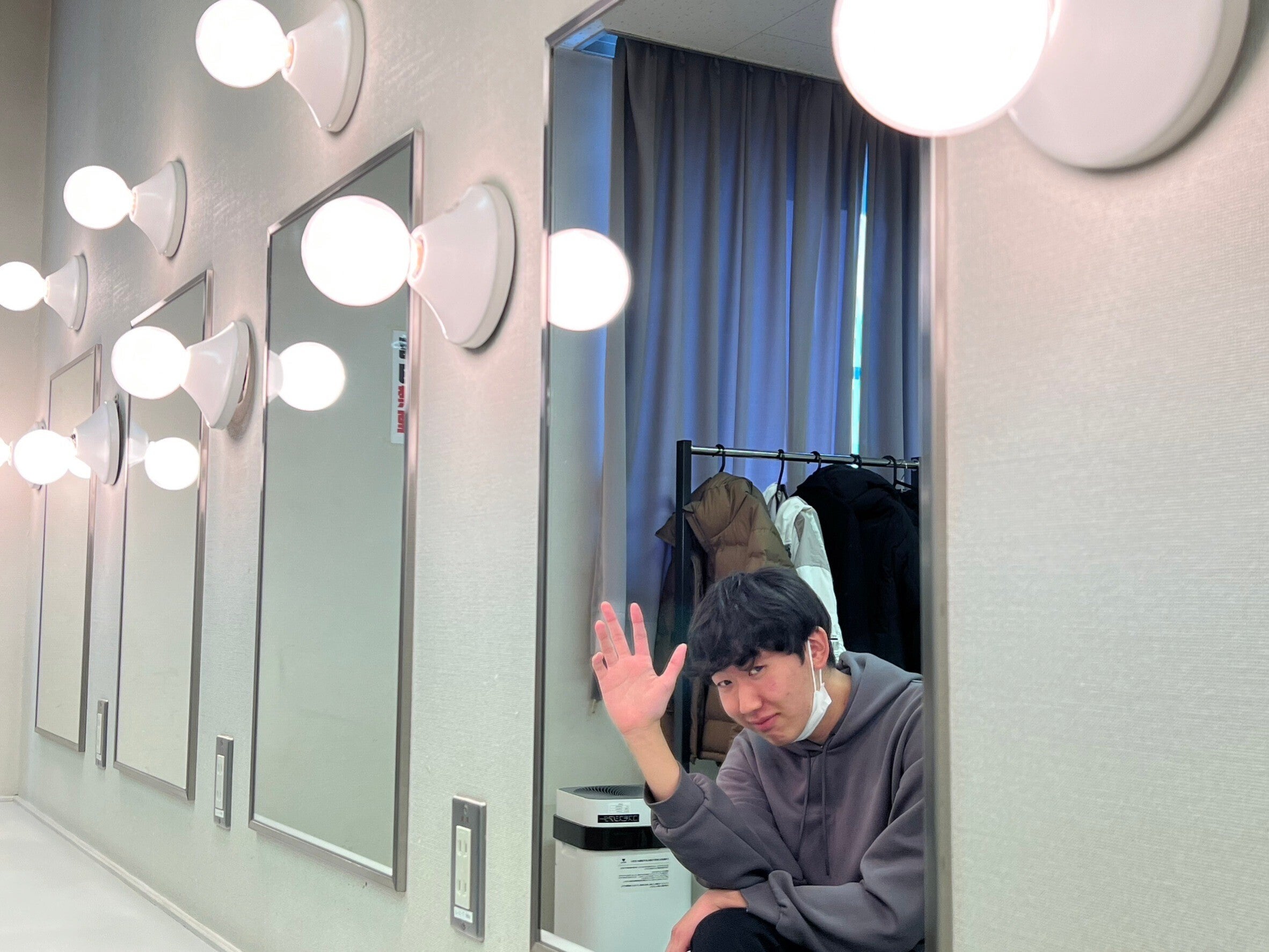 「人生初の楽屋」で興奮気味に遊ぶ西園寺君の様子を
