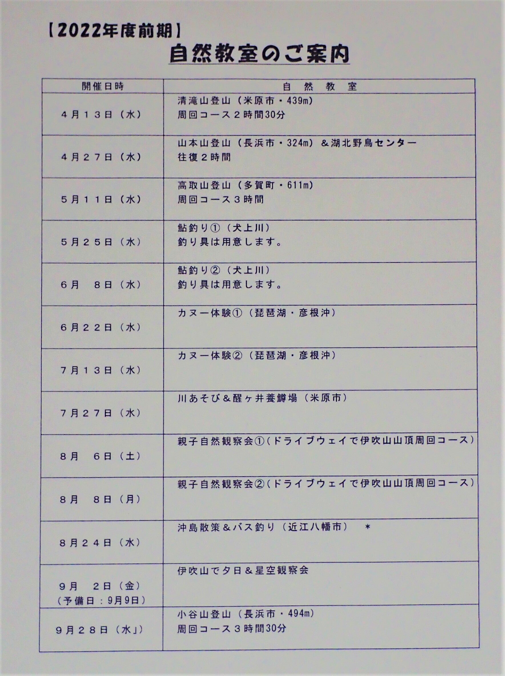1年間で全24回の自然教室(登山やカヌー、鮎釣りなど)から1教室を選択し、参加できます。