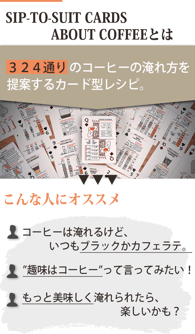 コーヒーの美味しい淹れ方を「遊びながら学べる」SIP-TO-SUIT CARDS ABOUT COFFEEが再び日本上陸!