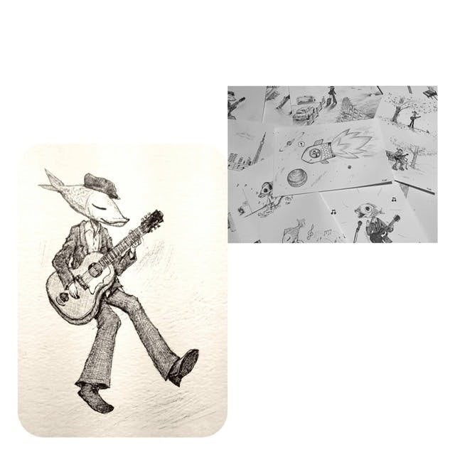 靴底が魚の形なんですよね。雪さんのイラストは遊び心があり、それを見つけた喜びはひとしおです。