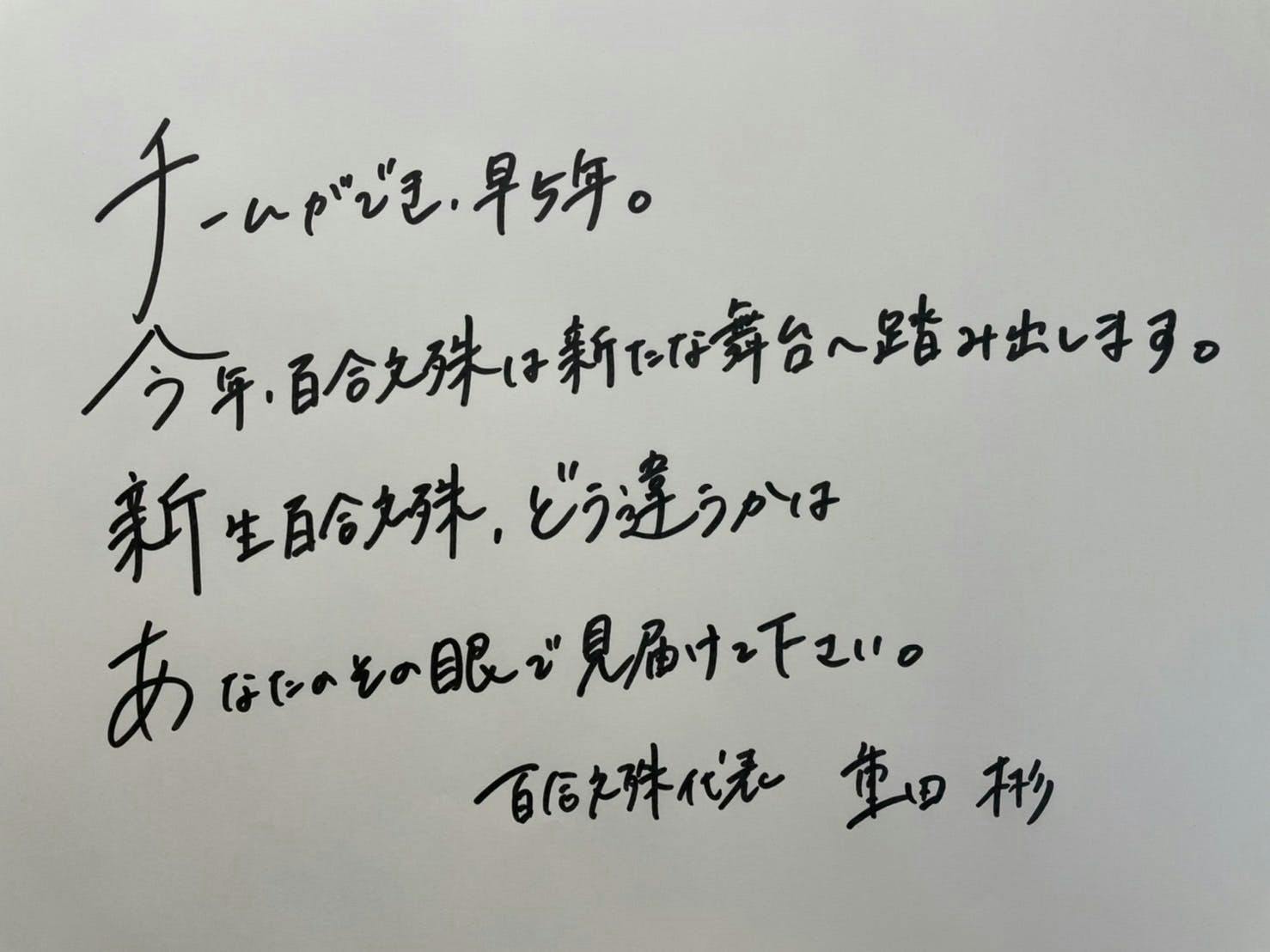 今年度の百合文殊は「飛天」へ向けた「挑戦」の年です。今回のクラウドファンディングを通して皆様と『燈翠』を完成させるとともに、5代目の大きな挑戦・百合文殊の更なる躍進に向けて、皆様のご支援をメンバー一同心よりお待ちしております。