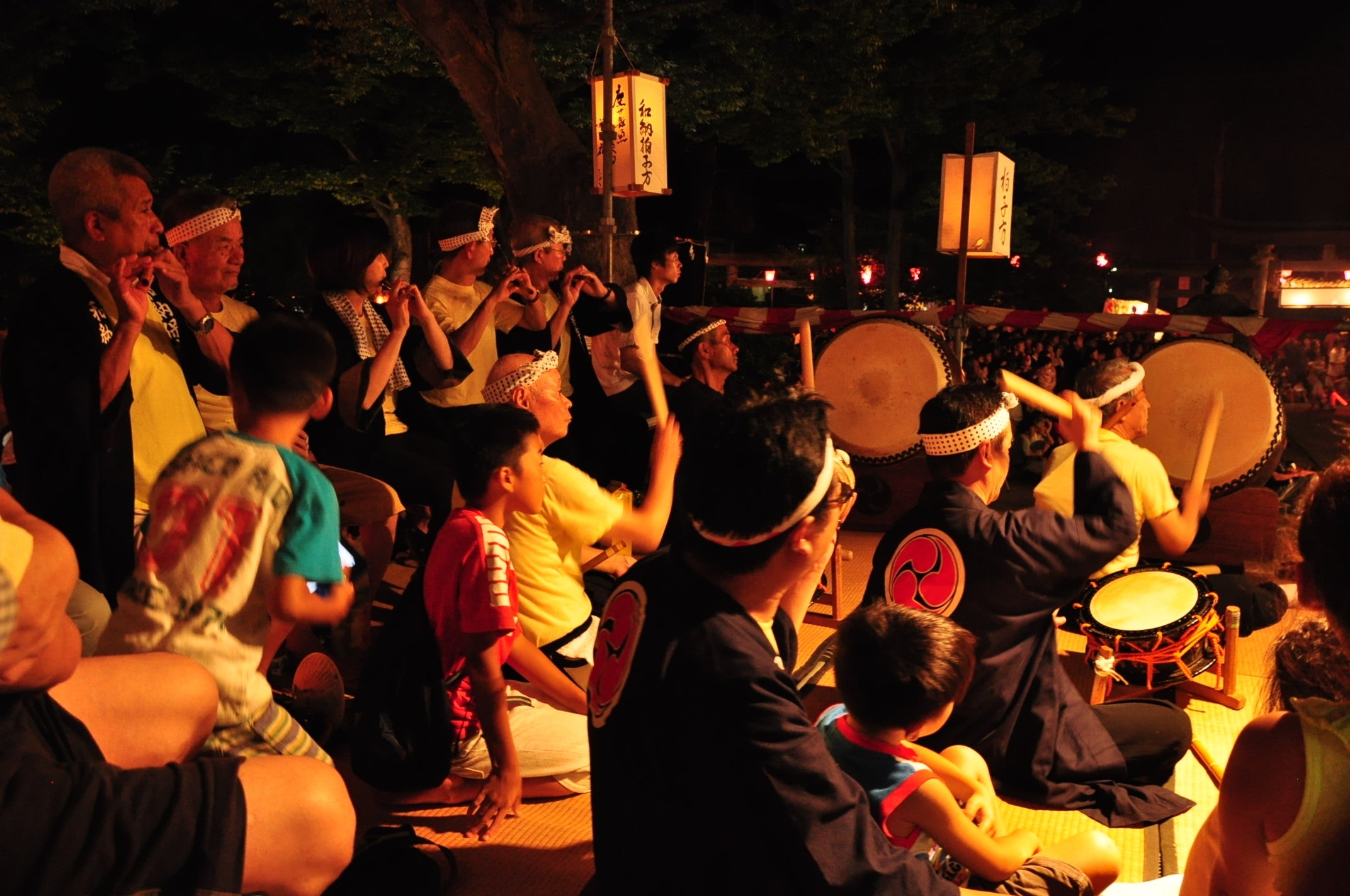 拍子方の笛と太鼓の音は、花火だけでなく神輿が神社を渡り歩く神輿渡御でも演奏され、祭りの雰囲気を一層盛り上げてくれています。