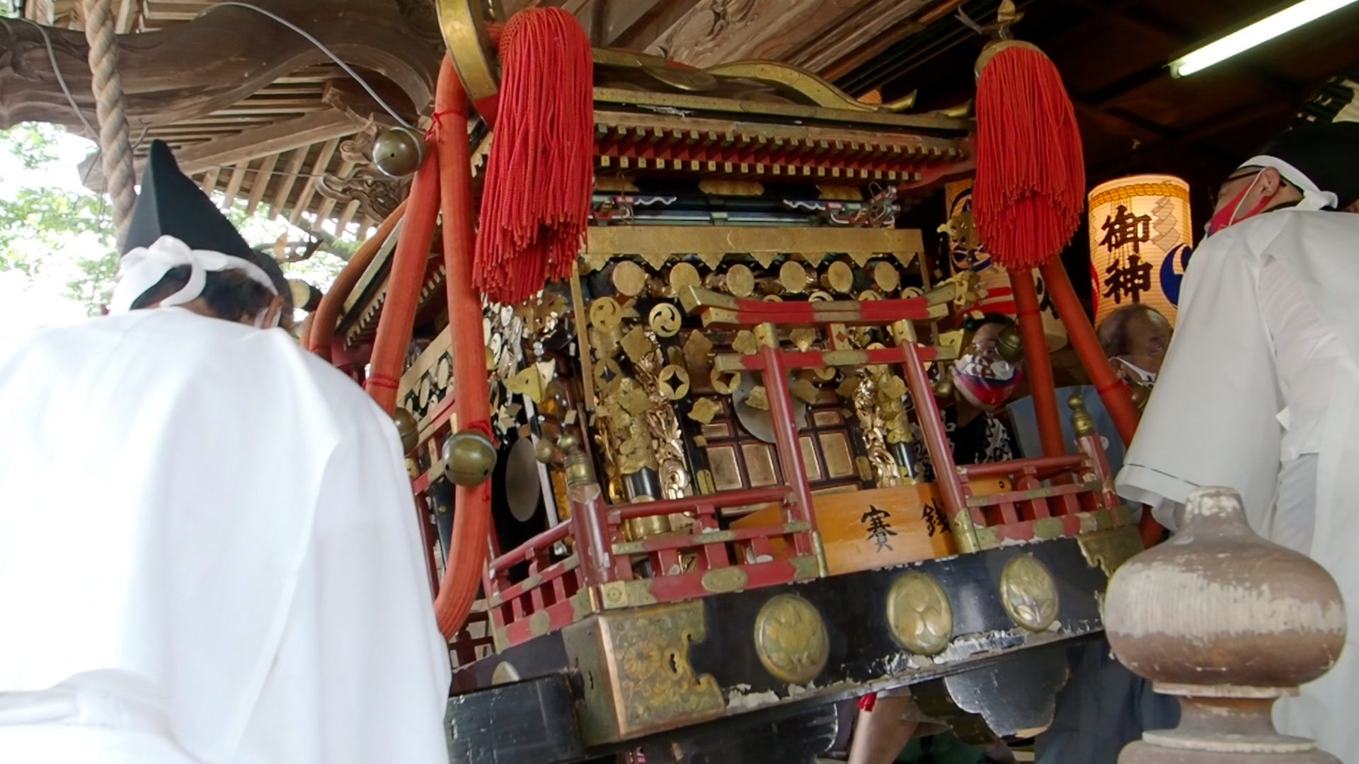 その後、宵祭(祭りの初日)の午後から上のお宮(三社神社)を出発し、下のお宮(住吉社)で一晩を明かし、翌日、上のお宮に戻るという神輿渡御が始まりました。