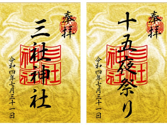 〇御朱印用奉書紙(100×150)に御朱印を押印し「十五夜祭り」と墨書き