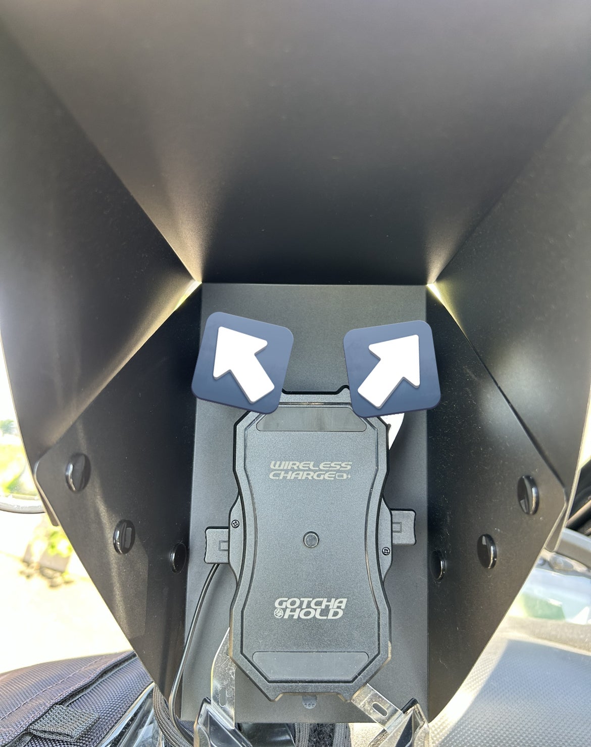 スマホホルダーカバーはスマホをすっぽりと包み込む形状になっており、雨や日差しからスマホを守る設計になっています。