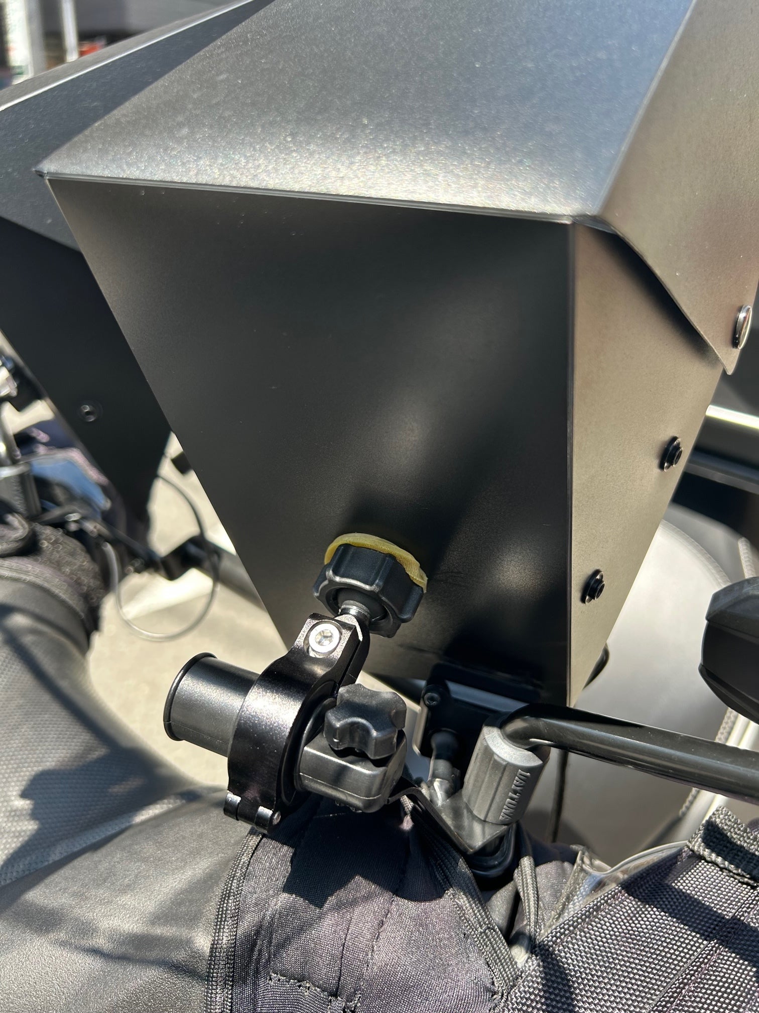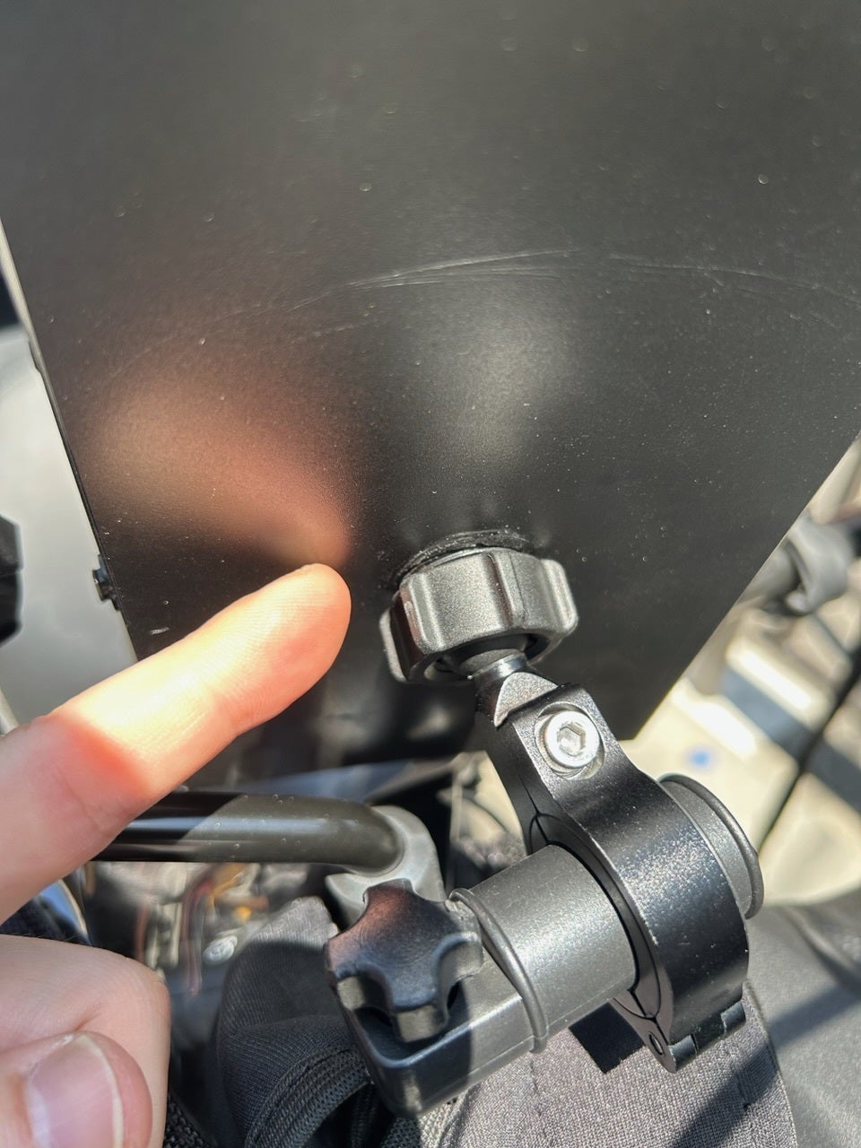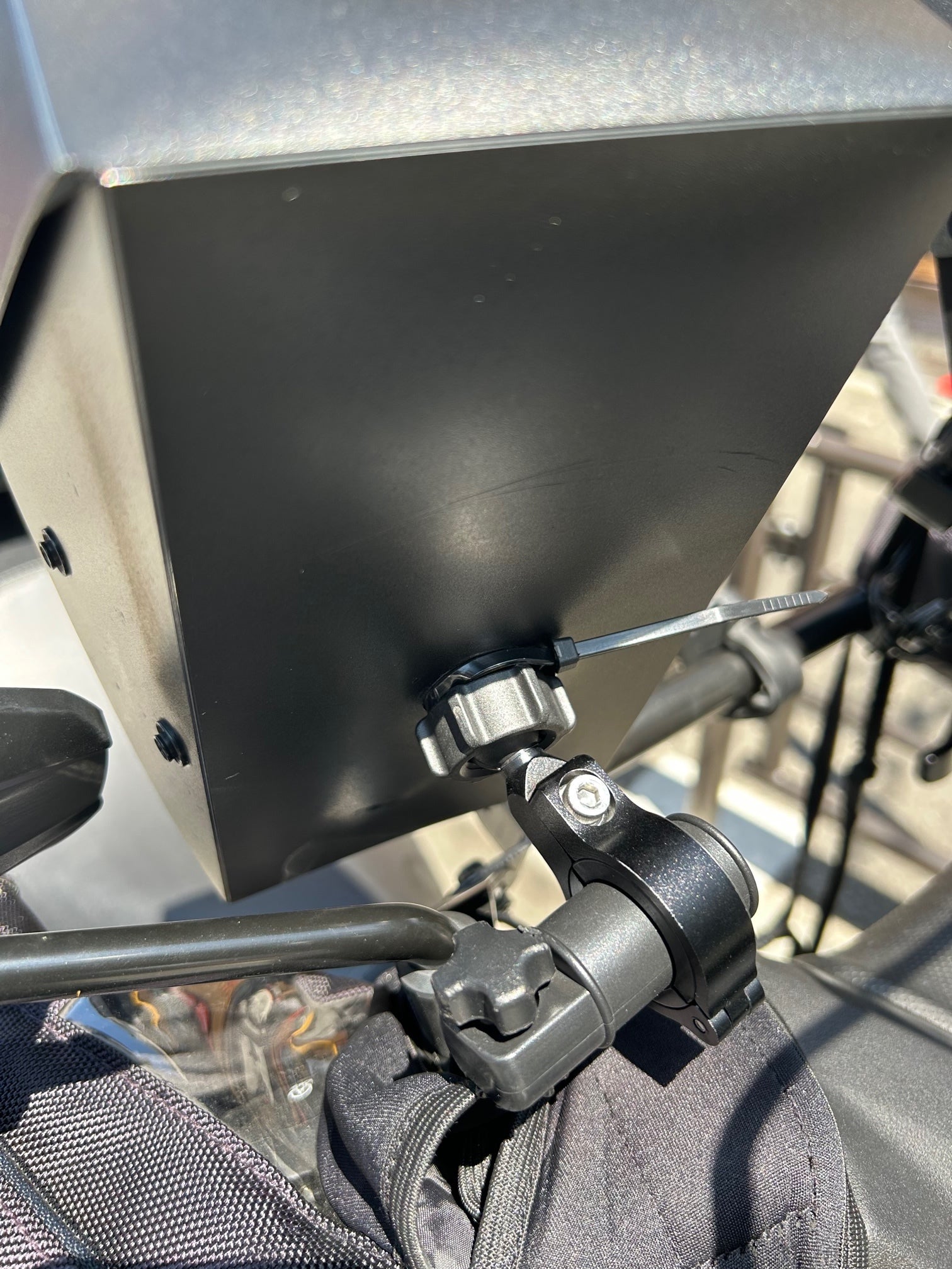 結束バンドを輪っかにしてスマホホルダーカバーとボールマウントジョイントの隙間に結束バンドを挟んでジョイントを締め込む事でグラグラを防ぐ事ができます。