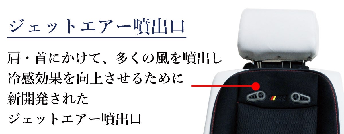 人が涼しいと感じやすい肩・首に対して効果的に風を噴出するジェットブロアファンを搭載