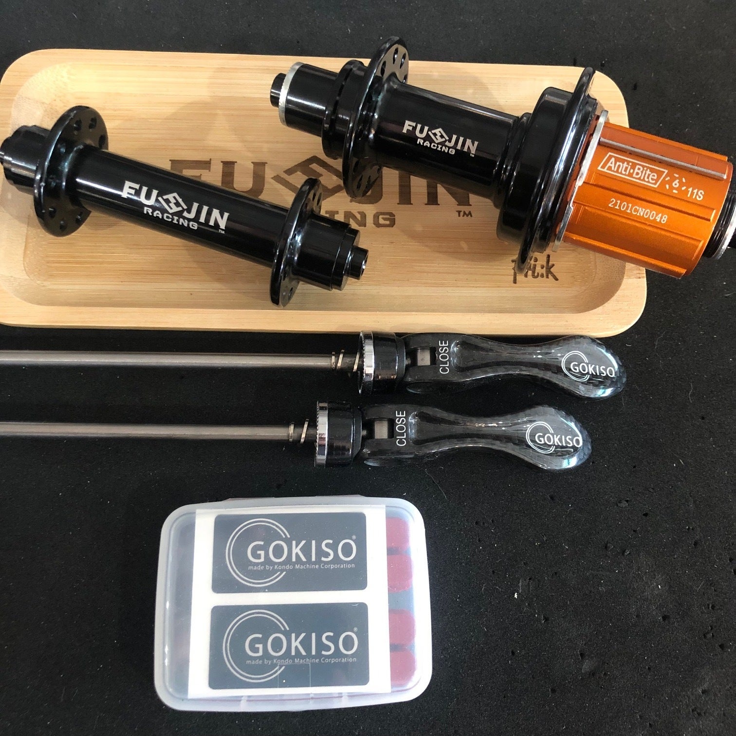 ►工場やメーカー既製の完成商品を採用しないオリジナル設計。※オリジナル設計はディスクブレーキ仕様の本体構造です。リムブレーキ仕様はFU-JINRACINGのカスタムを行ったセミオリジナルとなります。両ハブともフリーボディは工場のアッセンブリとなります。