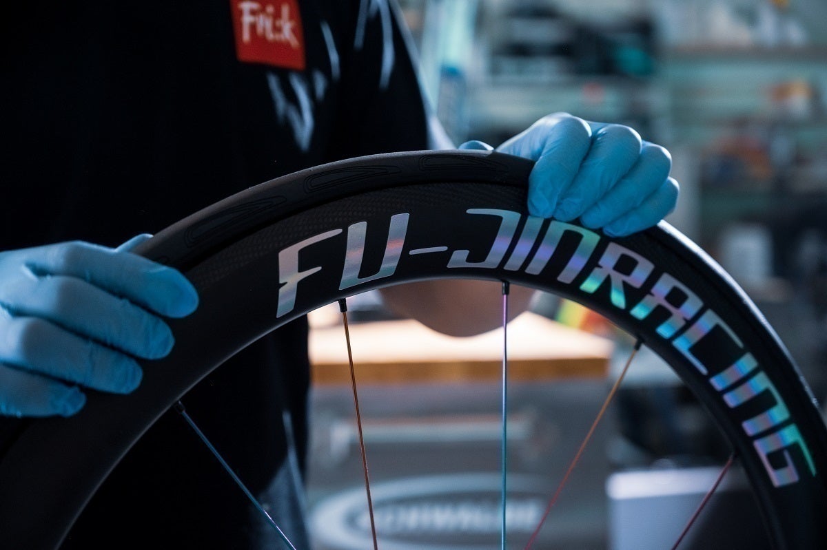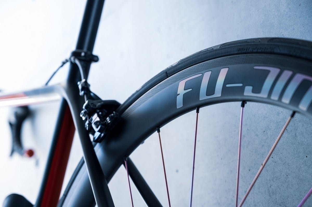 A:ディスクブレーキ仕様は1,450g~、リムブレーキ仕様は1,350g~の設定で計画しております。開発段階であり、一部変更や、スポーク・ニップルの選択で変動します。