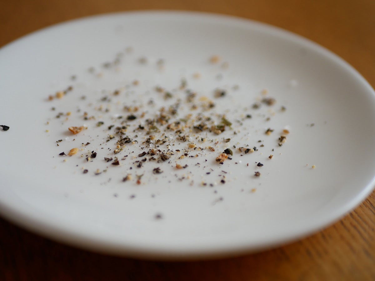 挽きたてのブラックペッパーの香り、大西洋の海水で作られたミネラルたっぷりの塩。