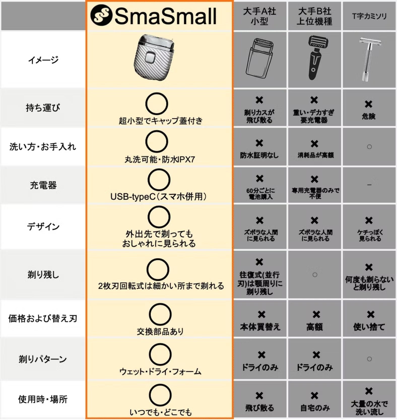 他社と比較しても小さいのに本格的な剃り心地