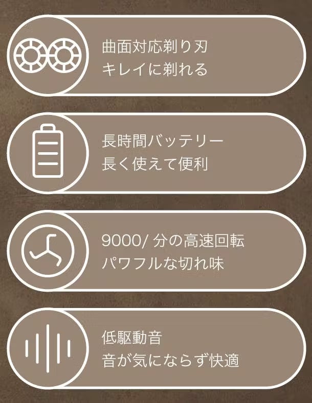 A5:高密度リチウムバッテリーで、30日間使用可能です。※1回の髭剃りで2〜3分の計算