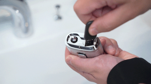 A6:付属のUSBケーブルタイプCで充電してください。3分間充電すれば髭剃り1回分が充電できます。フル充電は1時間で完了します。