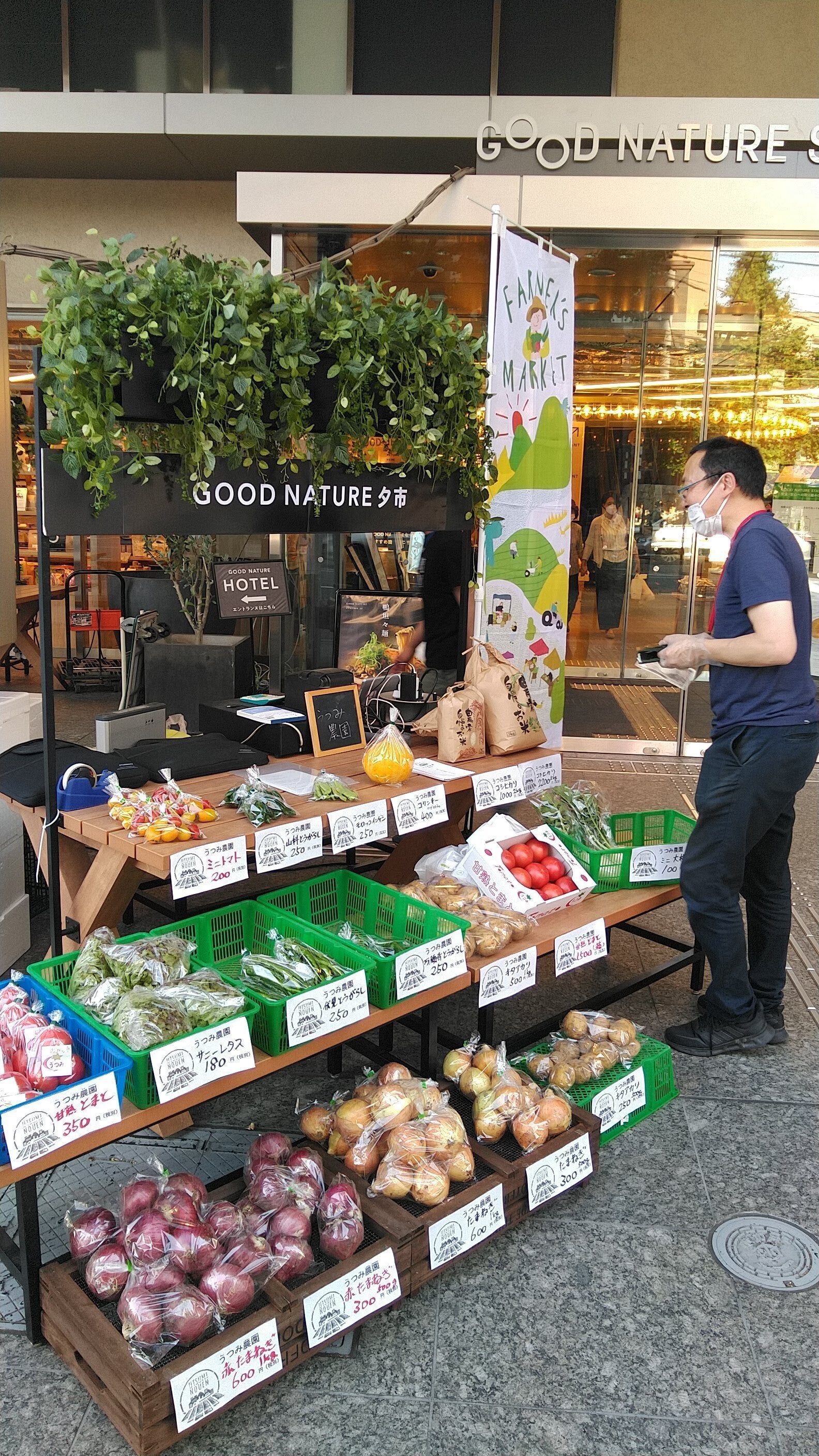 日常的に対面お買い物をしてもらいたい、という試みで、四条河原町のグッドネイチャーステーションにて6月は毎週木曜「夕市」を開催いたします。16時~19時に実施します。6月2日木曜に第1回目を無事終了しました。